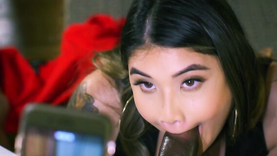 Когда муж согласился с фантазиями своей жены про случайное свидание, девушка решила не упускать шанса встречи с чернокожим красавчиком, с которым она познакомилась на вечеринке. И, попав к негру в гости, попросила его снять на камеру телефона для мужа, как она делает минет. Смело присела на колени и принялась отсасывать головку большого члена. Вылизала бритые яйца, затем перекинула ляжки через член и начала присаживаться на него сверху в позу наездницы. Слезла, страстно поцеловала негра в губы и подставила свою киску для траха в позу раком. Получила серию проникновений сзади, развернулась на спину, и негр начал лизать своей любовнице бритую пилотку. Не меняя позы навалился сверху и стал ебать в дырку по самые яйца, плавно набирая обороты проникновений. Поменялся местами и чужая сисястая жена оседлала большой член в позе наездницы. Начала делать на нём приседания с широко расставленными ногами и громко стонать. Легла на на живот и негр в этой позе оставил след своей спермы внутри влагалища, кончив в него не вынимая.