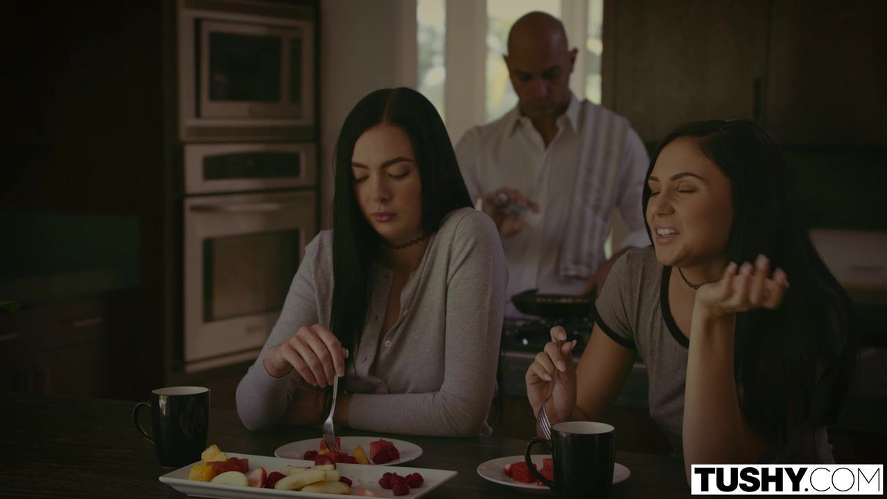 Две игривые девушки стали близкими подругами благодаря своим сексуальным фантазиям. Обе часто занимались мастурбацией и в своих грёзах представляли секс с разными привлекательными мужчинами. Но однажды они переступили черту дозволенного, когда подруга совратила отчима брюнетки на секс, а падчерица потом присоединилась. Девушка застала мужика на диване, когда его жены не было дома, и начала делать минет. Член встал, а появление падчерицы, которая так же присоединилась к отсасыванию, только ещё сильнее подогрело его сексуальный аппетит. Он уложил подругу на спину и засадил ей пенис во влагалище по самые яйца. Затем трахнул в пилотку падчерицу, с закинутой на плечо ляжкой и решил, что стоит обеих поиметь в очко. Выставил молодую подружку раком, навис над её задницей и засадил в анал по самые яйца. Вытащил член, и ее место заняла падчерица. Потом сучки по очереди оседлали член отчима задницами. Обе подрочили член и дали кончить на язык.