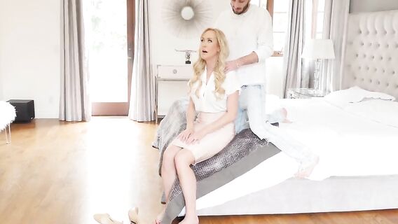 Мачеха вернулась домой сильно уставшей и, позвав пасынка, попросила сделать массаж. Но, чем больше молодые крепкие руки прикасались к её телу, тем сильнее женщина возбуждалась. Она попросила достать массажер, который лежал в тумбочке. Парень начал массировать вибратором спину блондинки, но она взяла его за руку и, раздвинув ноги, плавно опустила игрушку ниже, чтобы она помассировала её клитор через трусы. Откинулась на спину, чувак отодвинул трусы мачехи в сторону и, припав губами к её пилотке, начал жадно вылизывать клитор. Глубокий минет в ответ не заставил себя долго ждать. А, сразу после отсоса, парень засадил зрелой во влагалище и уже через пару минут сделал первый кремпай во влагалище. Только оргазм не снял напряжение, а наоборот, его усилил. И пасынок продолжил пилить грудастую женщину во влагалище с новым напором. Трахал раком и снова кончил. Засадил в позе наездницы и опять слил сперму внутрь. А последнюю порцию спермы, которая оставалась в яйцах, парнишка смело отправил блондинке в рот.