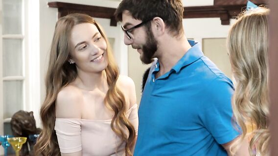 Вся семья готовится к празднику. Аня злится на подругу, которая никогда не надевает трусиков. Саманта не обращает на нее внимания и светит пилоткой перед парнем, а тот расчехлил ствол, чтобы засунуть его поглубже ей в ротик. Пока Саманта сосет, Аня возмущается ее поведением. Позже на празднике все веселятся и пытаются с закрытыми глазами разбить Пиньяту. Как только конфеты оказываются на полу, телочки на четвереньках начинают их собирать. Глядя на их попки, парень возбуждается и достает член, чтобы подрочить. Аня даже не поняла, как сама насадилась на хуй братца. Девке настолько это понравилось, что она не собиралась с него слезать. Вскоре и Саманта присоединилась к их играм и принялась лизать пилотку подружки. Сводный брат трахается теперь не только с сестрой, но и с ее подругой.