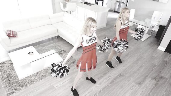 Две блондинки собираются войти в ряды группы поддержки, поэтому и репетируют дома. Им нужно сделать пару удачных снимков и снять небольшое видео о своей жизни. Одна из телочек решила попросить сводного брата помочь им. Парень не очень хорошо выполняет свою работу, ведь он больше любуется на сводную сестру и ее подругу, а не следит за качеством фотографий. Сестричка поняла, что брат возбужден, поэтому решила подыграть ему. Пока подруги нет рядом, она трется попкой о член братца, а тот по-быстрому ее стоя трахает. После того, как вернулась подруга из туалета, о репетиции было забыто. Возбужденный самец трахнул двух черлидерш в сочные киски по очереди, а те стонали от удовольствия на диване и одаривали друг друга лесби ласками. После секса он облил личики обеих блондинок густой спермой.