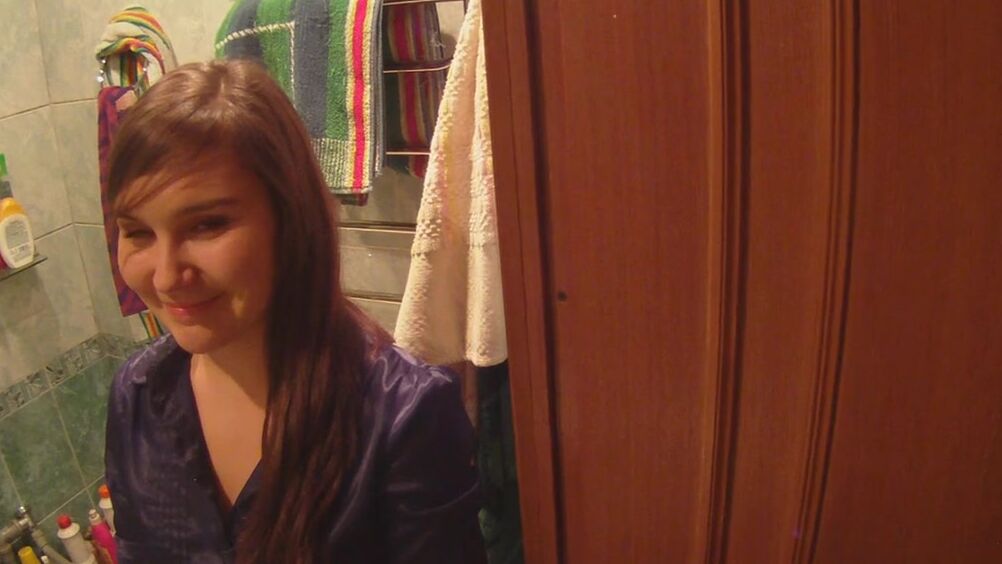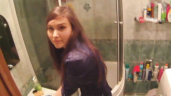 Русский парень познакомился с красоткой на улице и узнал, что та направляется в магазин за лампочками. Он не только проводил ее до дома, но и любезно помог девушке вкрутить лампочку. Брюнетка была рада, что ей попался такой отзывчивый парень, поэтому и решила отблагодарить его. Красотка засветила перед ним свои аккуратные сиськи, а потом полезла к парню в штаны, чтобы попробовать его член на вкус. Возбудив своего нового приятеля качественным минетом, девушка впустила его стояк в сочную письку. Они трахались в ванной комнате, пробуя разные позы, а потом девица получила струю спермы на свои сиськи.