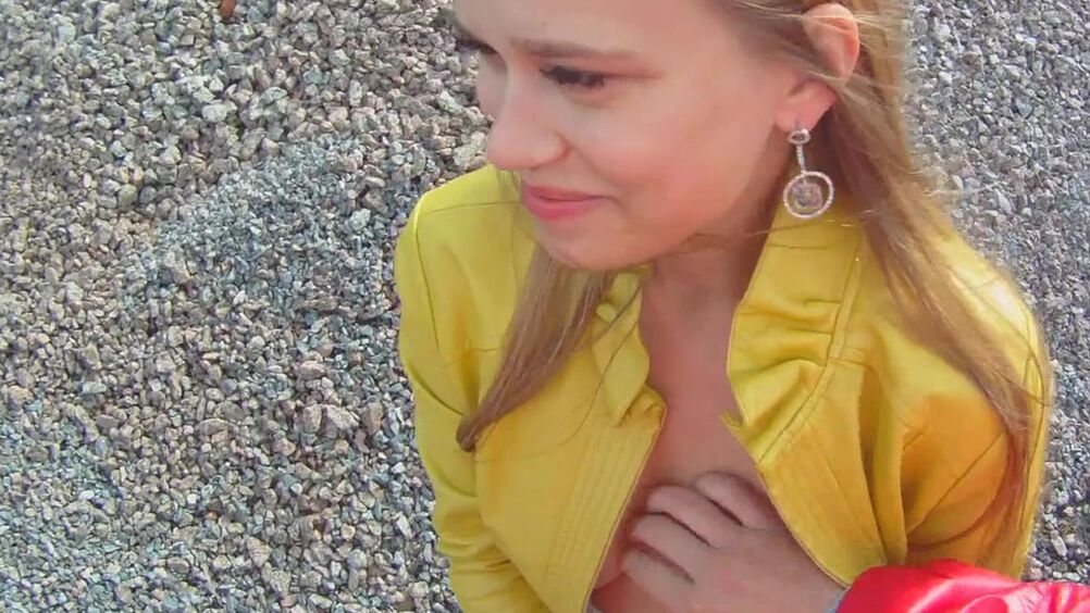 Заметив симпатичную молодую девушку у футбольного поля, хитрый парень в шпионских очках решил с ней познакомиться поближе. Этот похотливый самец представился бывшим футболистом, и телочка на это повелась, согласившись с ним на небольшую прогулку. Он привел ее на стройплощадку и там смог соблазнить на секс. Шатенка оказалась той еще шлюшкой и с удовольствием засветила перед ним свои аккуратные сиськи. Увидев перед собой мощный член парня, она, опустившись на колени взяла его в ротик. После жаркого отсоса телку ждал не менее жаркий секс на стройплощадке нового стадиона. Она принимала стояк в пизду и стонала от кайфа, а в конце полакомилась спермой.