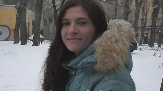 Молодая брюнетка сидела на скамейке в такую снежную погоду, что порно агент просто не мог пройти мимо нее. Он сообщил ей, что ищет молодые таланты для съемок в своем кино и в скором времени русская девушка уже была на кастинге в его офисе. Девушка раздевается на камеру, чтобы агент смог, как следует рассмотреть ее прелести. Она засветила свои маленькие сиськи, а потом решилась и на то, чтобы снять трусики и показать соблазнительную пизду на камеру. Голая красотка болтала с порно агентом, и он убеждал ее в том, что ей обязательно нужно вернуться сюда еще, чтобы снять в другой раз видео по горячее.