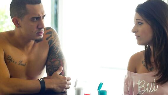 Как только у этой девушки заканчивают таблетки, то она чувствует себя не в своей тарелке и начинает нервничать. Видя ее состояние, сводный брат решает ее немного успокоить, и он точно знает, что ей нужно на данный момент. Для начала он засовывает поглубже ей в рот свой член, чтобы сводная сестра могла почувствовать, какой он твердый и горячий. После сводный братец разорвал на сестре одежду и трахнул ее в киску, которая была влажной от желания. Он трахал ее раком на диване, заставляя все громче стонать от удовольствия. Потом парочка меняла позы, кайфуя друг от друга. Довольный самец в конце заставил красотку принять на лицо его свежую и густую сперму.