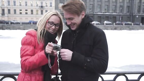 Увидев симпатичную туристку, которая впервые оказалась в этом городе и хотела изучить все его достопримечательности, русский парень вызвался ей помочь. Для начала он пригласил цыпочку к себе, чтобы немного согреться, ведь погода была просто ужасная. Блондинка с радостью согласилась. Как только они оказались наедине в доме, телочка в очках была не против того, чтобы парень потрогал ее сиськи. Это так возбудило гостью, что она решила отсосать самцу. После жаркого минета русский самец сделал кунилингус цыпочке, а потом засадил ствол в ее тугую киску. Отымев красотку во всех удобных позах на белом диване, парень с наслаждением кончил на лицо блондинке в очках.