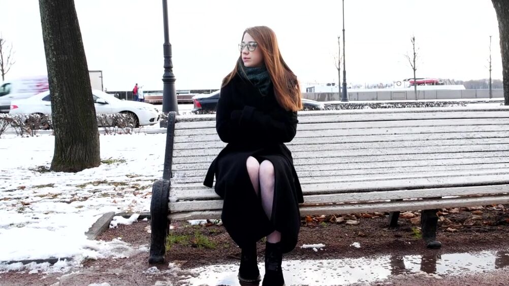 В зимнем парке на холоде симпатичная телочка в очках читала книжку и уже явно замерзла. Увидев ее, парень не стал проезжать мимо. Русский парень познакомился с телочкой и подвез рыжую студентку до дома. Девушка была настолько благодарно этому парню, что решила его отблагодарить. Усевшись на колени к парню, она начала раздеваться и целоваться. Засветив свои маленькие сиськи перед ним, телочка полезла к парню в штаны, чтобы разгорячить его минетом. После отсоса он посадил рыженькую цыпочку на ствол и трахнул ее так, что нежные стоны ее удовольствия были слышны всем соседям. Отымев девицу в разных позах, он кончил ей на очки.