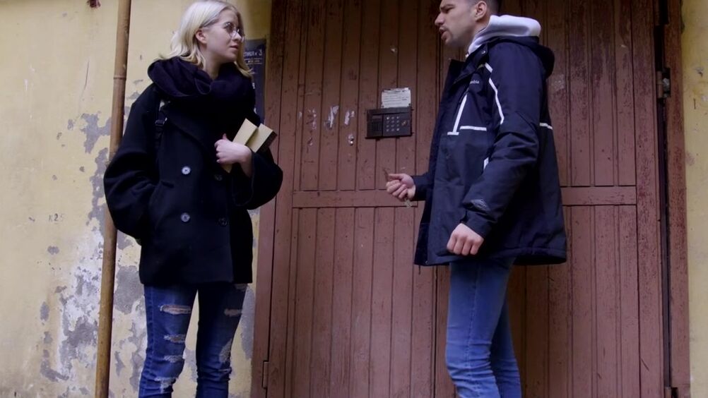 Блондинка в очках шла к своему парню, чтобы вместе подготовиться к предстоящим экзаменам, но у подъезда встретила его соседа. Этот хитрый русский парень обманул наивную девушку соседа, рассказав, что у ее парня есть другая. Светловолосая цыпочка поднялась вместе с соседом к нему и была в таких расстроенных чувствах, что парень поспешил ее утешить своим членом. Девица после минета лежала, раздвинув ноги и стонала от блаженства, так как этот парень умел делать просто шикарный куни. Разгоряченный самец трахнул эту цыпочку в сочную пилотку, заставляя стонать от удовольствия. Жаркий секс закончился камшотом на лицо.