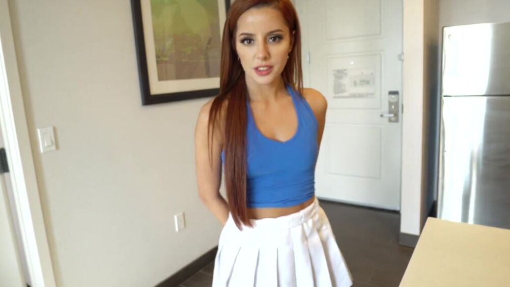 Парень только притворялся, что он спит на диване. На самом деле, он прекрасно видел, как рыжеволосая сводная сестра залезла в его бумажник. Эта сучка пыталась украсть кредитку брата, чтобы прошвырнуться по магазинам, но он поймал ее с поличным. Теперь рыженькая сестра готова выполнить любое желание брата, лишь бы он не проболтался об этом случае родителям. Когда сводный брат достал большой член из штанов, то сестричке пришлось побаловать его жарким минетом. После отсоса они уединился в спальне, где парень отжарил в разных позах сочную пизду сводной сестры и угостил ее свежей спермой.