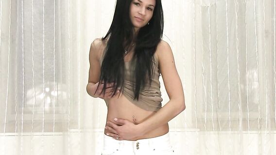 Милая студентка задрала свою майку, чтобы каждый смог оценить ее маленькие аккуратные сиськи. Супер худая брюнетка намерена полностью раздеться, чтобы показать на камеру великолепную соло мастурбацию. Загорелая цыпочка, лежа на мягком ковре, принимается ласкать свой клитор и возбуждать пилотку нежными прикосновениями. Почувствовав, что писька намокла от возбуждения, горячая студентка вставляет пальчики в дырочку. Красотка трахнула себя пальцами и стонала от удовольствия, чувствуя, как все ее тело содрогается от реального кайфа. Девица продолжала вставлять пальчики, извиваться от удовольствия, трахая себя в разных позах до тех пор, пока не испытала оргазм.