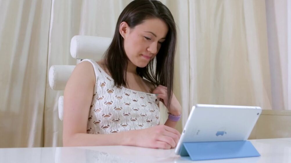Общаясь с парнем по планшету, девица чувствует сильное возбуждение, которое накатывает на нее и заставляет снимать одежду. Поэтому очень быстро следует соло мастурбация русской брюнеточки в гольфах, которая весьма умело справляется со стимуляцией влагалища. Она делает все, чтобы половые губки оказались мокрыми настолько, что пальчикам будет просто туда входить. Такая обработка влагалища приносит ей тотальное наслаждение и заставляет поскорее встретиться с крутым оргазмом.