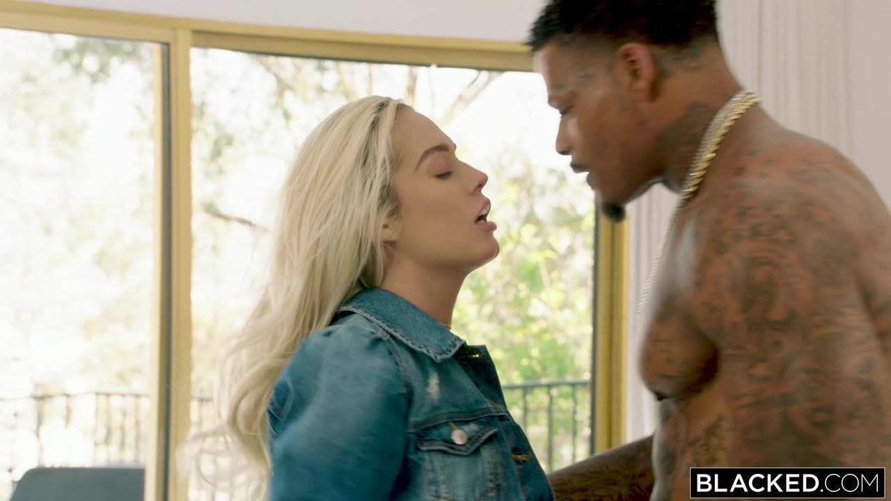 Работая менеджером по подбору персонала, молоденькая красивая девушка попала в очень неприятную историю. Открывая шампанское, она случайно разлила его на одежду очень влиятельно человека в сфере шоу-бизнеса, и подруге стало очень неудобно. Сначала блондинка начала умолять о прощении, но когда поймала на себе заинтересованный взгляд негра, то сразу поняла, каким способом можно решить свою оплошность. Нагло поцеловала парня в губы, опустилась на колени и продолжила выпрашивать прощение глубоким минетом. Но их спалили, и тогда они договорись встретиться на следующий день и продолжить начатое. Парочка уединилась в спальне, и девушка занялась сексом с негром на белой кровати. Блондинка больше не стеснялась и не переживала за свою работу, видя, как негру хорошо от её ласки. Она оттолкнула парня на кровать, надрочила громадный член и облизала яйца. Перекинула ляжку через его достоинство, и начала делать быстрые приседания на головке в позе наездницы. Слезла, стала в позу раком и негр трахнул стонущую блондинку членом сзади. Развернул белую девушку на спину и решил ей полизать. Сделал куни и натянул на шишку, стоя между ног. Потом вынул, подрочил и кончил на лицо подруги сверху.