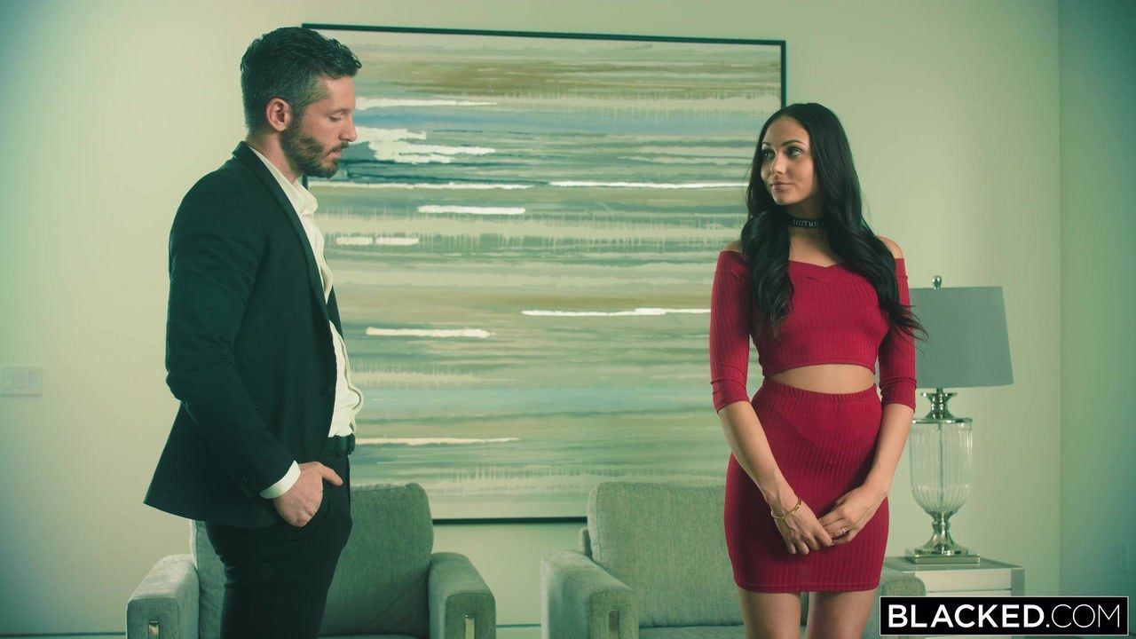 Девушке нравится подчиняться и она получает удовольствие от того, что постоянно ждет от своего супруга приказаний, а муж чувствует свою жену и знает, что ей действительно нужно в постели. Он специально покупает молодой брюнетке красную юбку с кофтой, которые идеально подходят под цвет её волос. Заставляет одеть на себя и отправляет на встречу с двумя чернокожими мужиками с большими членами. Негры зажимают девушку между собой. Но она просит разрешения включить телефон и снять всю их встречу на видео. И, как только камера включена, сучка в красном хватает негров за члены и начинает дрочить каждому залупу. Дальше мужик вешает девушку на себе головой вниз, чтобы она отсосала член его напарнику, а сам водит языком по клитору и делает белой девушке кунилингус. Сучка становится между негров в позу раком, и они дрючат ее с двух сторон, засаживая в рот и киску по самые яйца. Несколько раз меняются местами и чужая жена ебется с неграми на камеру в позе наездницы, сбоку и лёжа на спине. Получает оргазм и негры по очереди делают слив спермы на лицо и живот.
